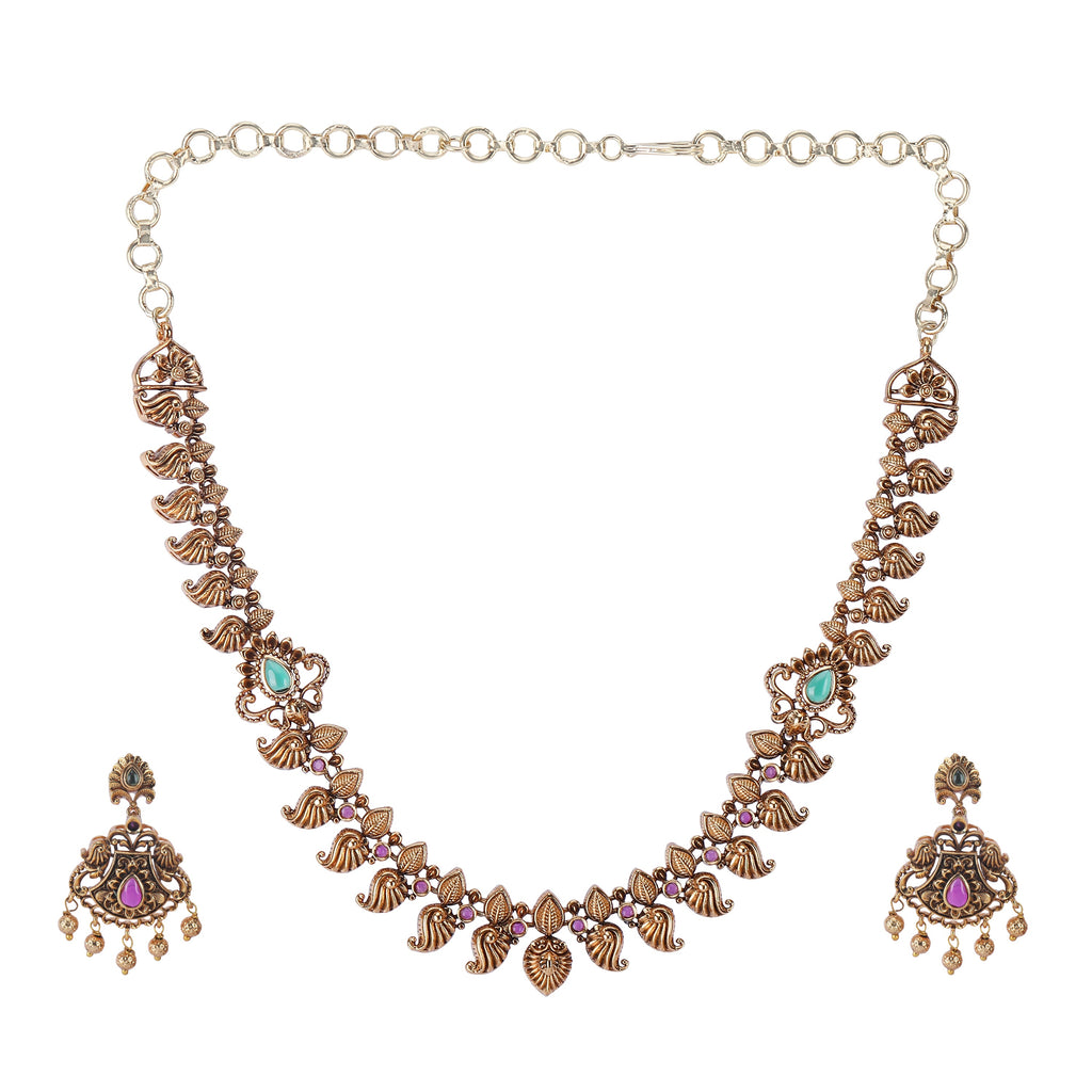 Details Size : Necklace L-21" X W-2" Earring L-1.2" X W-0.6" Stone Setting : Ruby Green Onyx String(s) : Drop(s) : Finish : Gold Plated Finding : Art Karat Jewelry is plated with 22k gold, studded with precious, semi-precious and...