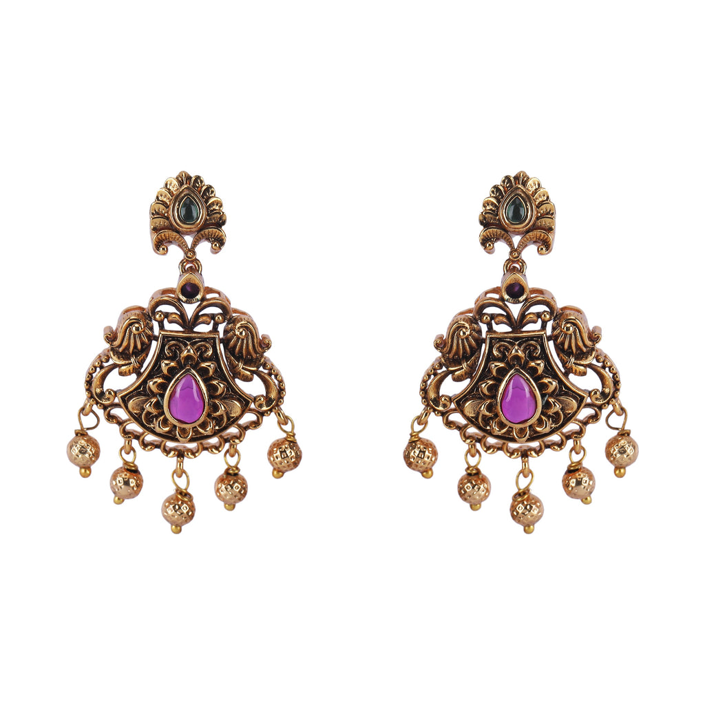 Details Size : Necklace L-21" X W-1.6" Earring L-1.3" X W-0.8" Stone Setting : Ruby String(s) : Drop(s) : Finish : Gold Plated Finding : Hook Link& Push Back Art Karat Jewelry is plated with 22k gold, studded with precious,...