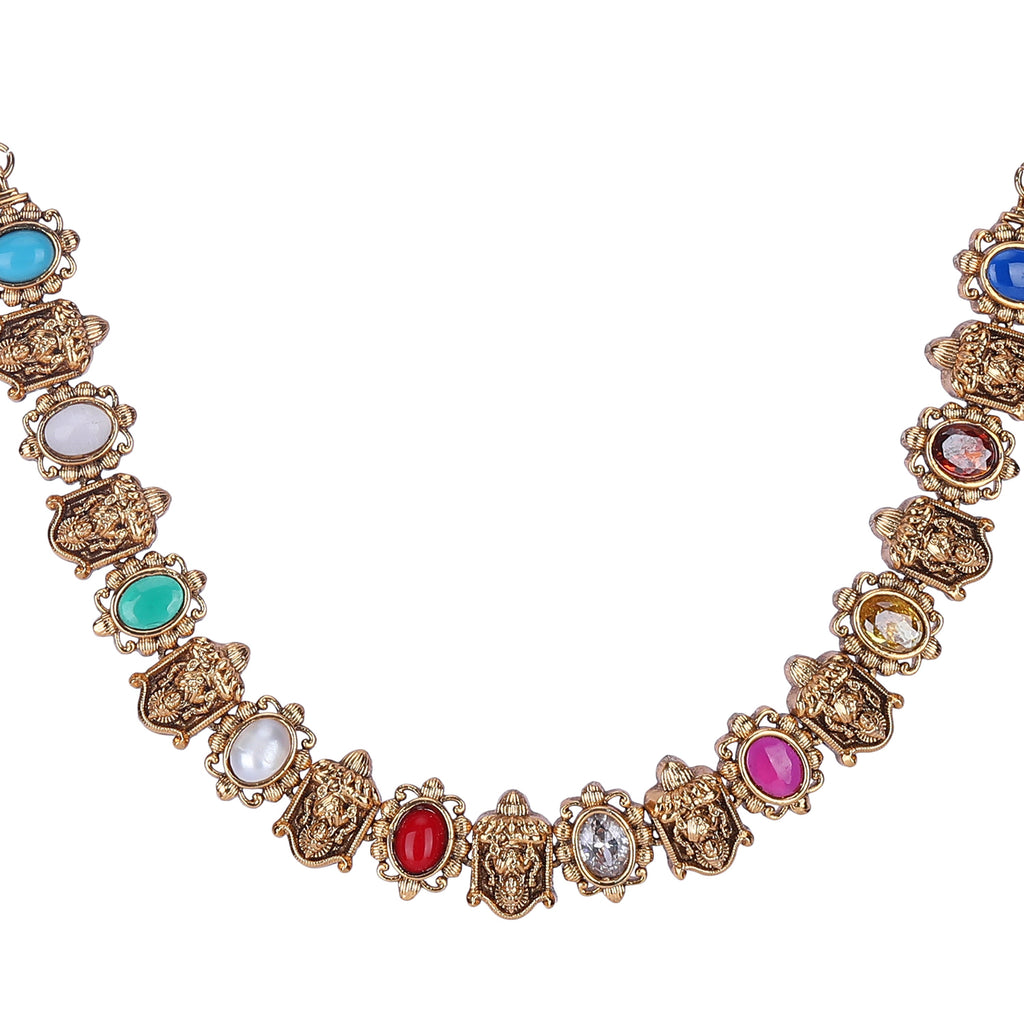 Details Size : Necklace L-21" X W-2" Earring L-1.2" X W-0.6" Stone Setting : Ruby Green Onyx String(s) : Drop(s) : Finish : Gold Plated Finding : Art Karat Jewelry is plated with 22k gold, studded with precious, semi-precious and...