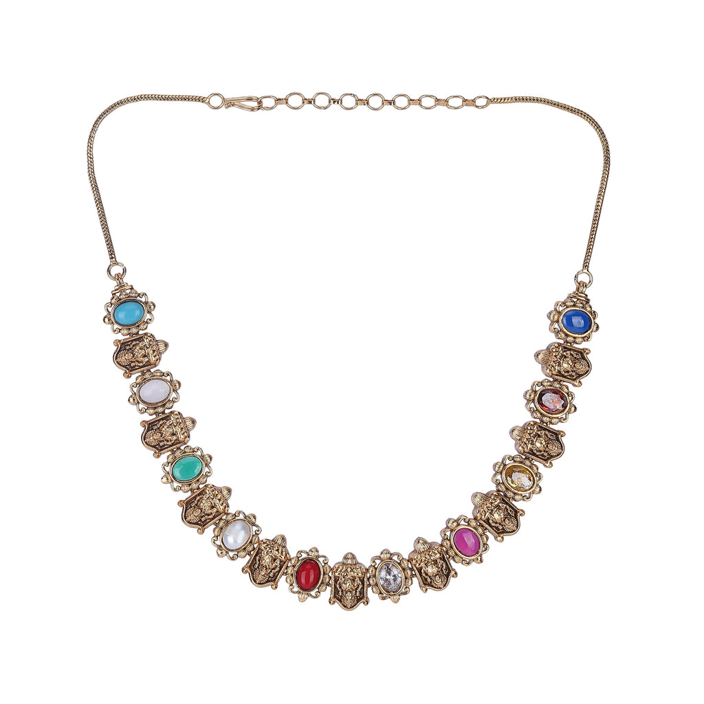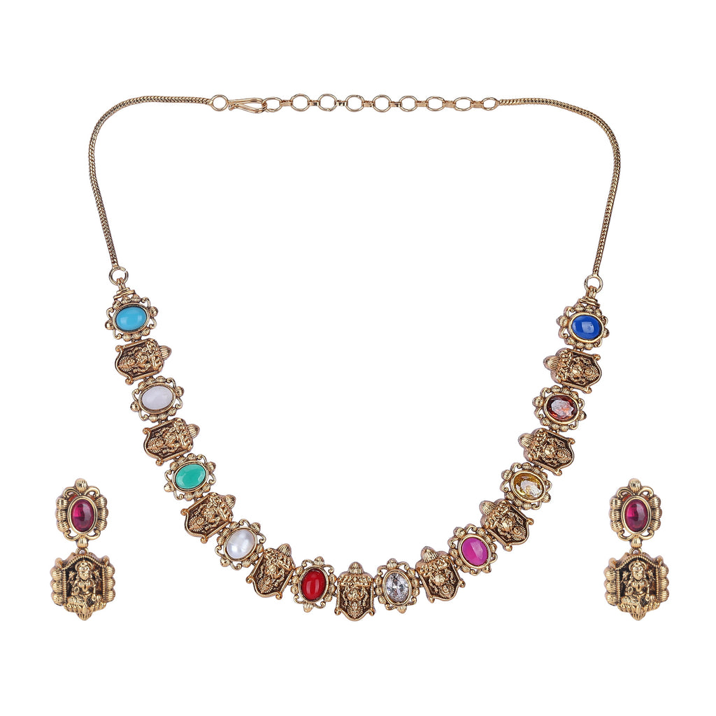 Details Size : Necklace L-8" X W-0.5" Earring L-0.7" X W-0.7" Stone Setting : String(s) : Drop(s) : Finish : Gold Plated Finding : Hook Link& Push Back Art Karat Jewelry is plated with 22k gold, studded with precious, semi-precious...