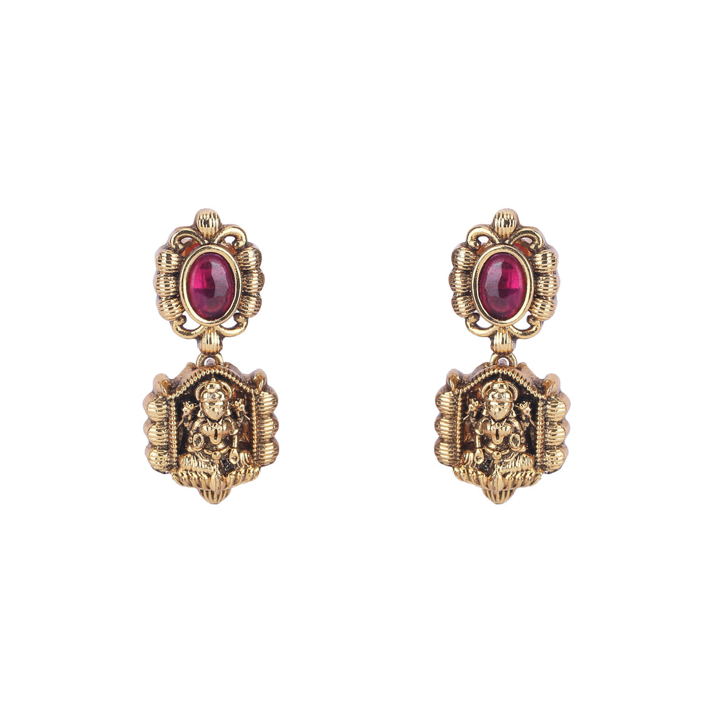 Details Size : Necklace L-21" X W-1.6" Earring L-1.3" X W-0.8" Stone Setting : Ruby String(s) : Drop(s) : Finish : Gold Plated Finding : Hook Link& Push Back Art Karat Jewelry is plated with 22k gold, studded with precious,...