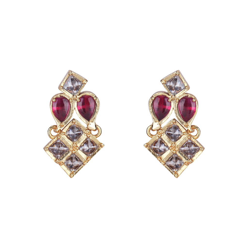 Details Size : Necklace L-21" X W-1.6" Earring L-1.3" X W-0.8" Stone Setting : Ruby String(s) : Drop(s) : Finish : Gold Plated Finding : Hook Link& Push Back Art Karat Jewelry is plated with 22k gold, studded with precious,...