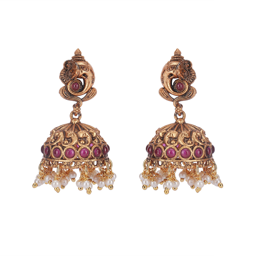 Details Size : Necklace L-21" X W-1.6" Earring L-1.3" X W-0.8" Stone Setting : Ruby String(s) : Drop(s) : Finish : Gold Plated Finding : Hook Link& Push Back Art Karat Jewelry is plated with 22k gold, studded with precious,...