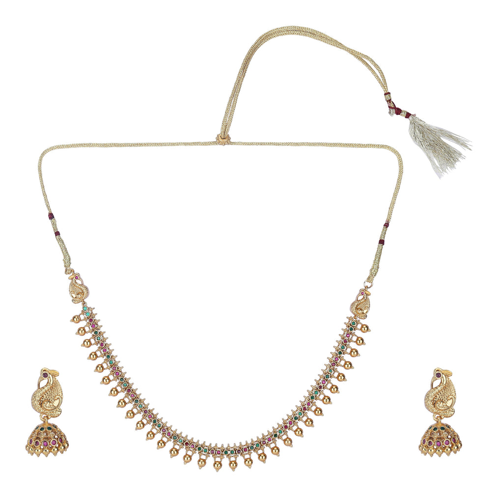Details Size : Necklace L-16" X W-0.3" Earring L-1.1" X W-0.5" Stone Setting : String(s) : Drop(s) : Finish : Gold Plated Finding : Hook Link& Push Back Art Karat Jewelry is plated with 22k gold, studded with precious, semi-precious...