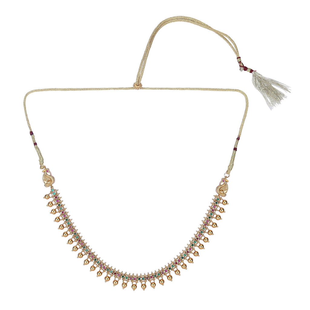 Details Size : Necklace L-16" X W-0.3" Earring L-1.1" X W-0.5" Stone Setting : String(s) : Drop(s) : Finish : Gold Plated...