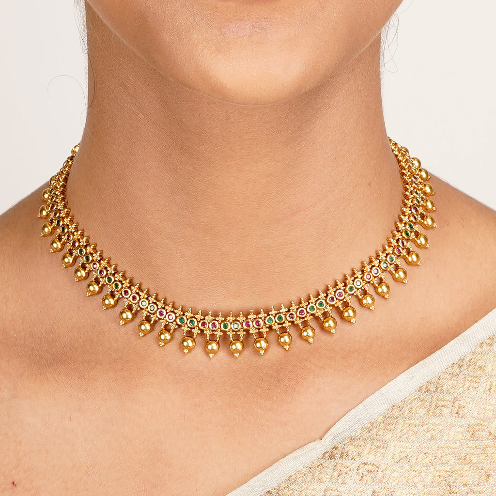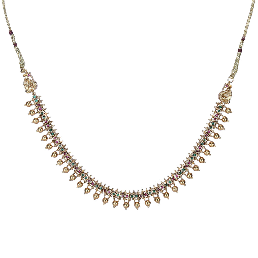 Details Size : Necklace L-8" X W-0.5" Earring L-0.7" X W-0.7" Stone Setting : String(s) : Drop(s) : Finish : Gold Plated Finding : Hook Link& Push Back Art Karat Jewelry is plated with 22k gold, studded with precious, semi-precious...