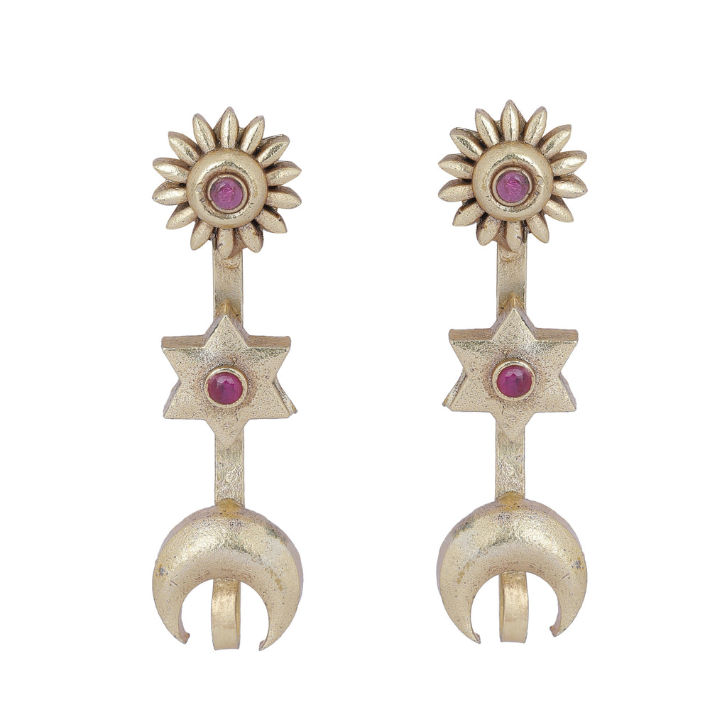 Details Size : Earring - 2.2"L X0.5"W Stone Setting : Kundan String(s) : Drop(s) : Fluoride Finish : 22k Gold Plated Finding : Push Back Art Karat Jewelry is plated with 22k gold, studded with precious, semi-precious and natural gemstones....