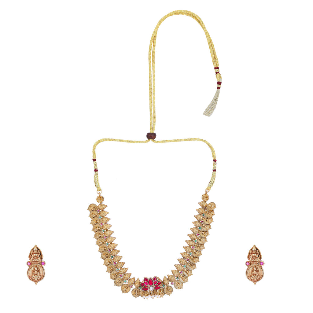 Details Size : Necklace L-18"Xw-0.6" Earring L-0.4"XW-0.4" Stone Setting : zircon String(s) : Chain Drop(s) : Finish : Gold Finding : Hook Link& Push Back Art Karat Jewelry is plated with 22k gold, studded with precious, semi-precious and...