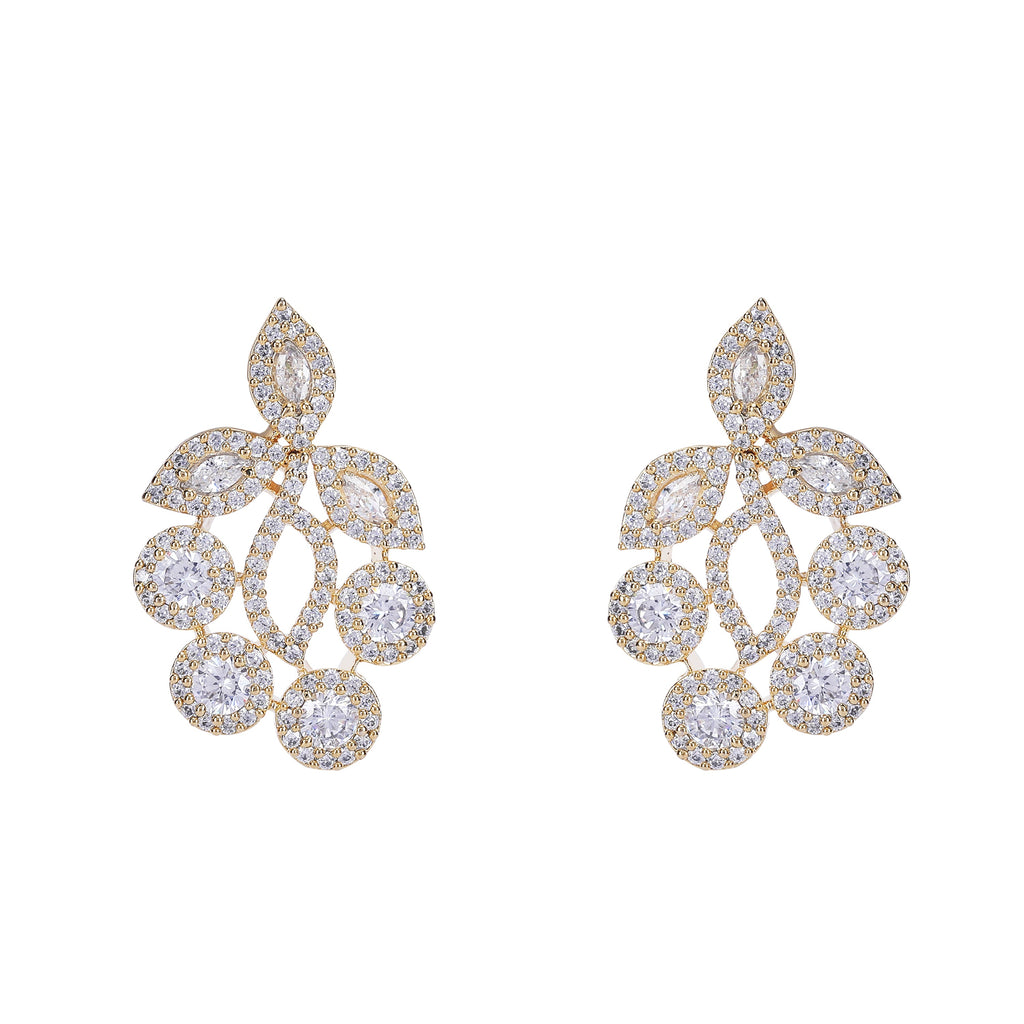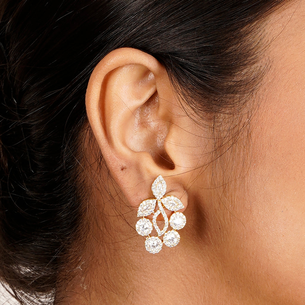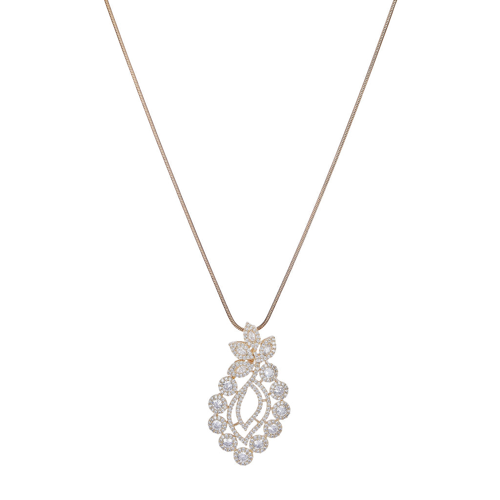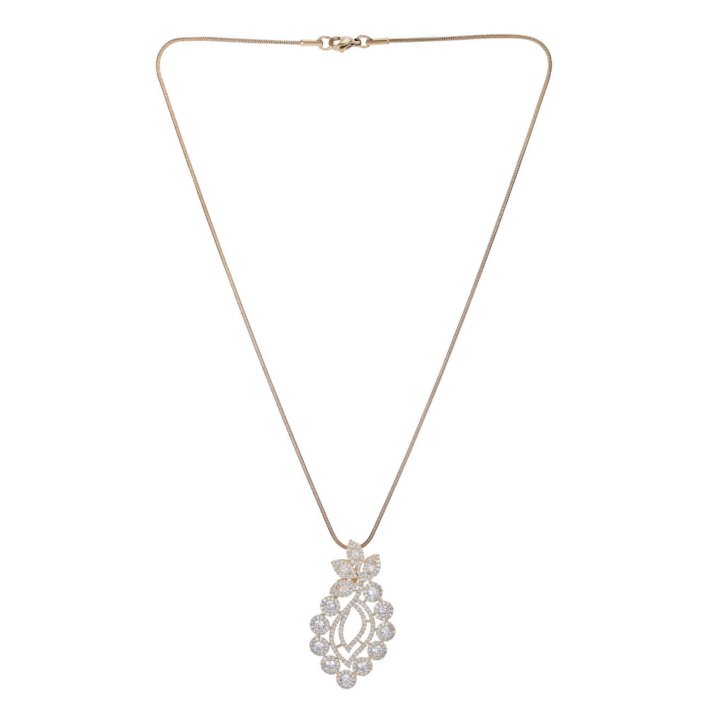 Details Size : Pendant L- 21"XW 1 " Earring L-2"XW .05" Stone Setting : Zircon String(s) : 22K Gold Plated Chain Drop(s)...