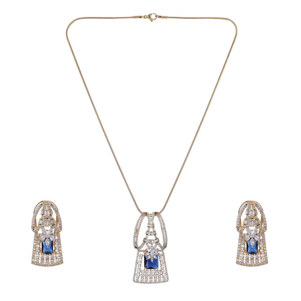 Details Size : Pendant L- 19"XW 0.8 " Earring L-0.7"XW .05" Stone Setting : Zircon String(s) : 22K Gold Plated Chain Drop(s)...