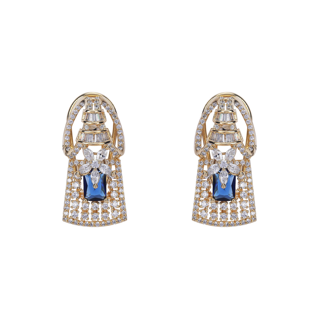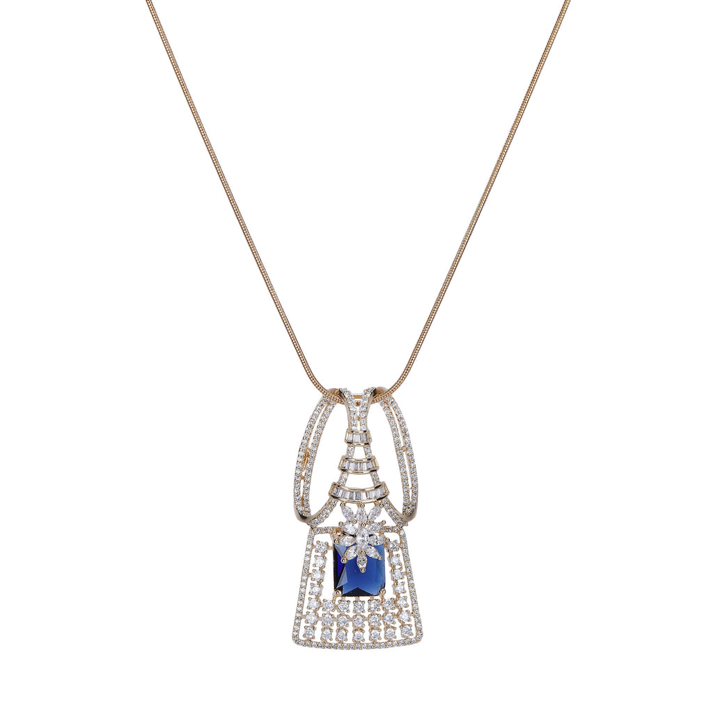 Details Size : Pendant L- 21"XW 1 " Earring L-2"XW .05" Stone Setting : Zircon String(s) : 22K Gold Plated Chain Drop(s)...