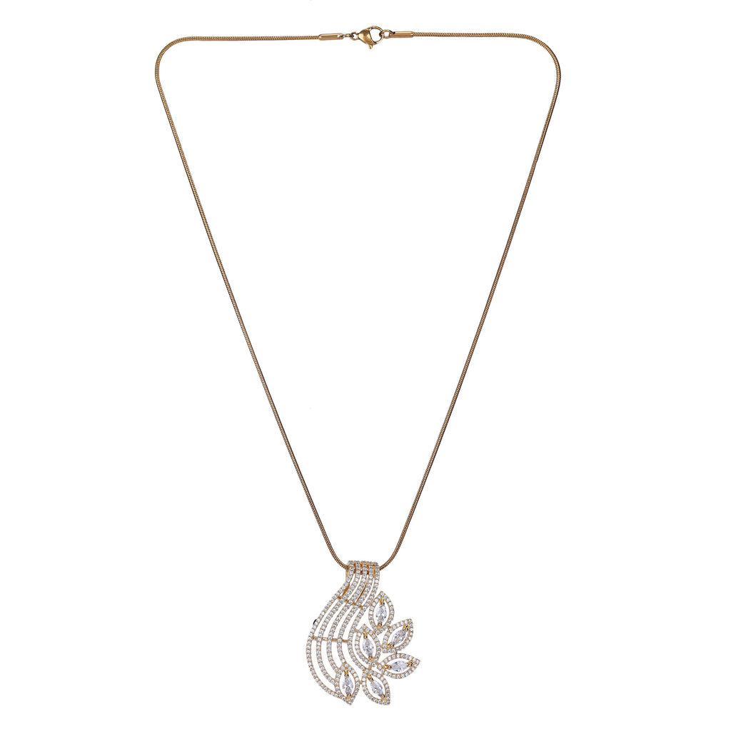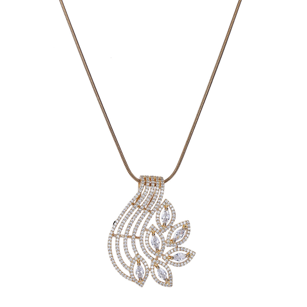 Details Size : Pendant L- 19"XW 0.8 " Earring L-0.7"XW .05" Stone Setting : Zircon String(s) : 22K Gold Plated Chain Drop(s) : Finish : 22K Gold plated Finding : Hook Link&Push Back Art Karat Jewelry is plated with 22k...