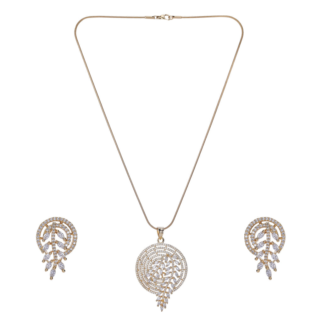 Details Size : Pendant L- 19"XW 0.8 " Earring L-0.7"XW .05" Stone Setting : Zircon String(s) : 22K Gold Plated Chain Drop(s) : Finish : 22K Gold plated Finding : Hook Link&Push Back Art Karat Jewelry is plated with 22k...