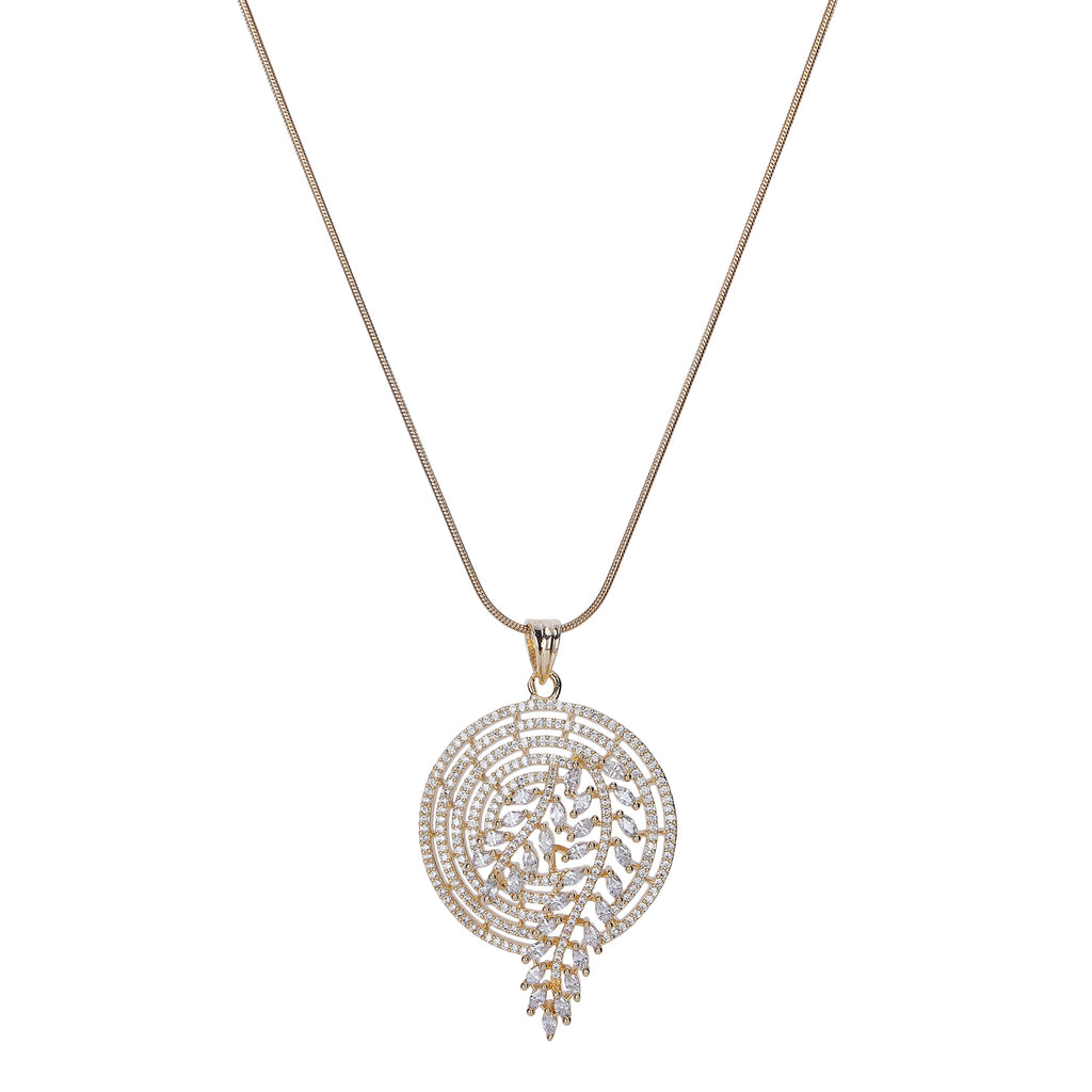 Details Size : Pendant L- 18"XW 0.7 " Earring L-0.3"XW .03" Stone Setting : Zircon String(s) : 22K Gold Plated Chain Drop(s) : Finish : 22K Gold plated Finding : Hook Link&Push Back Art Karat Jewelry is plated with 22k...