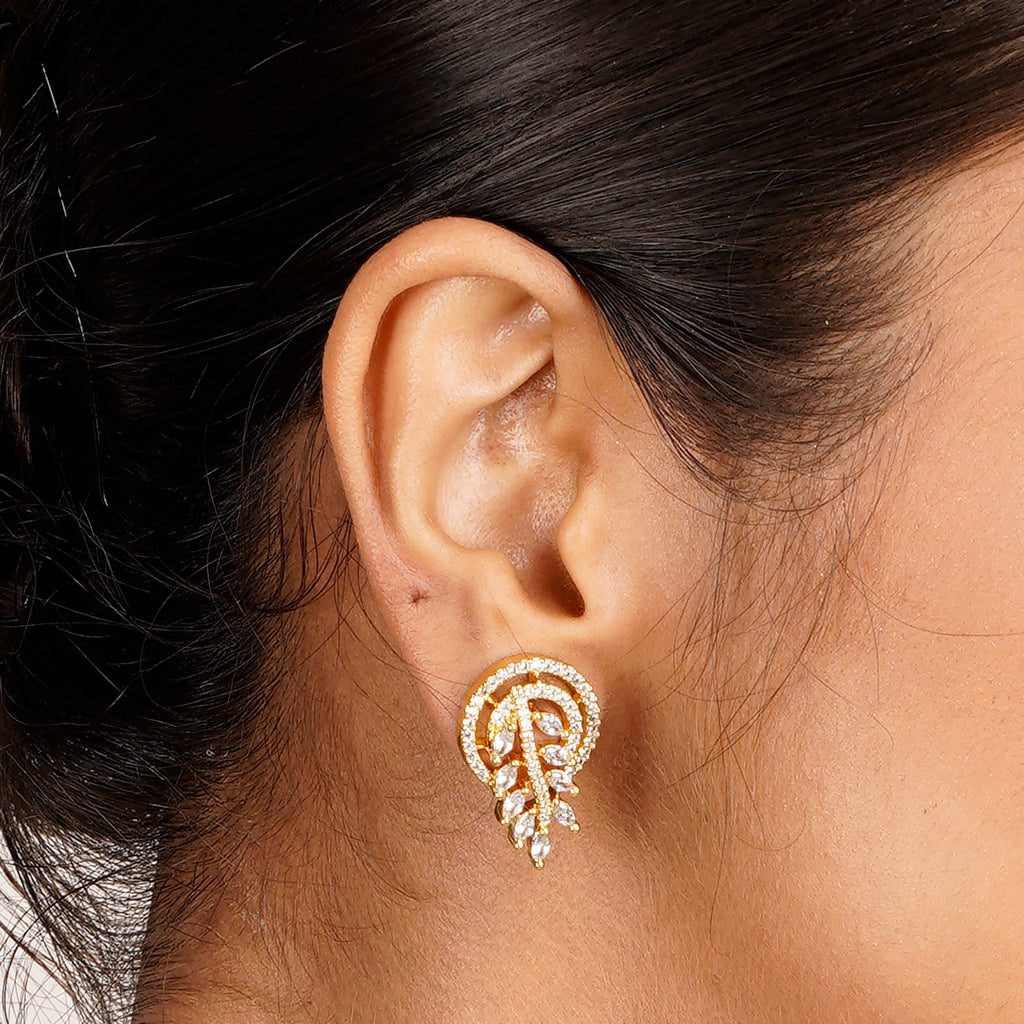 Details Size : Pendant L- 18"XW 0.8 " Earring L-0.6"XW .06" Stone Setting : Zircon String(s) : 22K Gold Plated Chain Drop(s)...