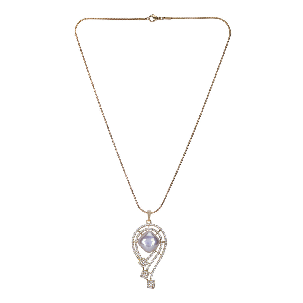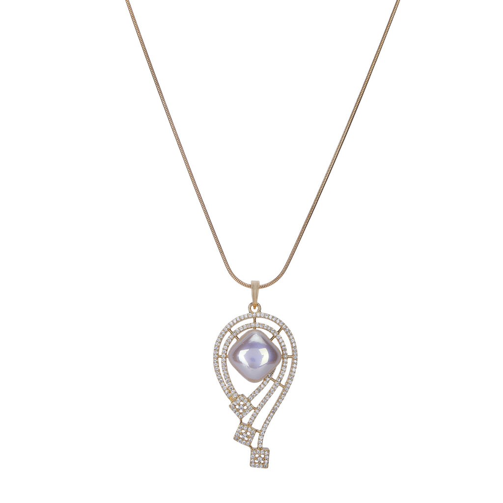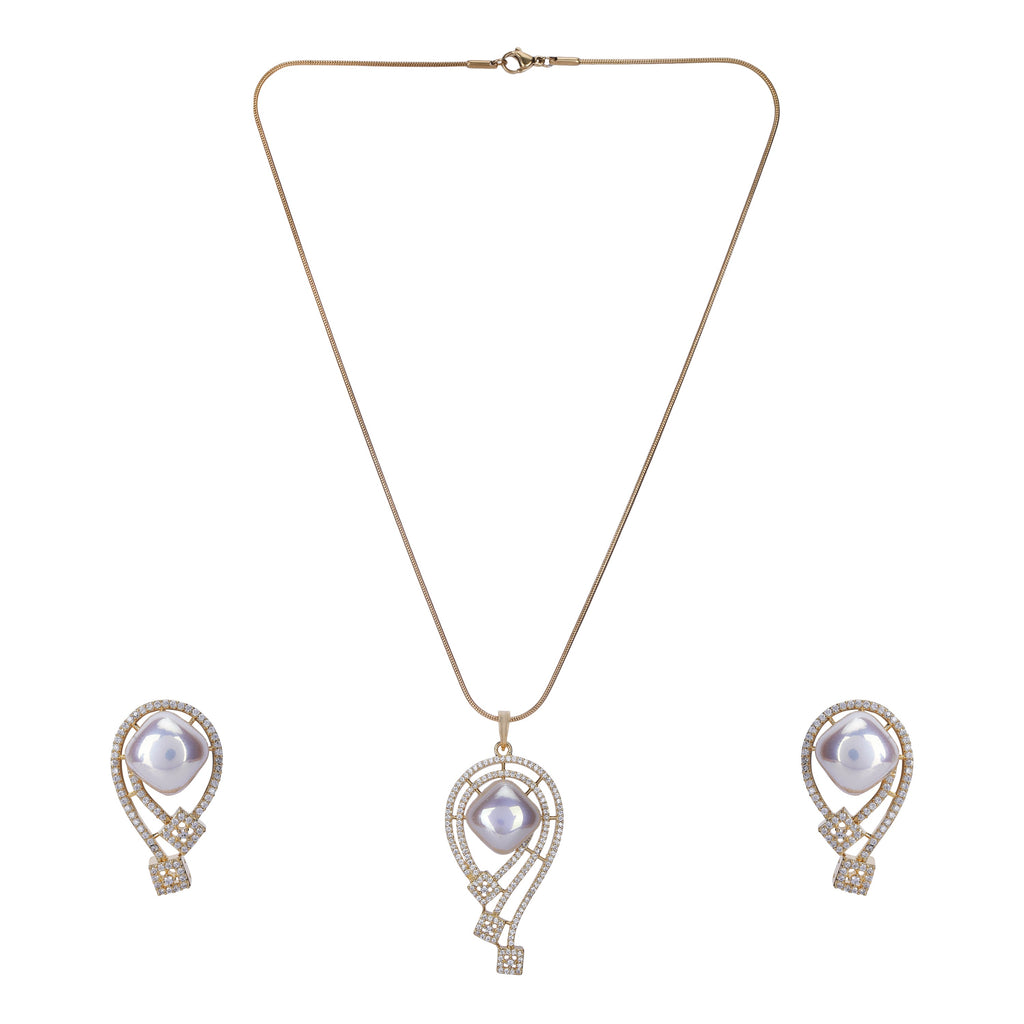 Details Size : Pendant L- 21"XW 1 " Earring L-2"XW .05" Stone Setting : Zircon String(s) : 22K Gold Plated Chain Drop(s)...