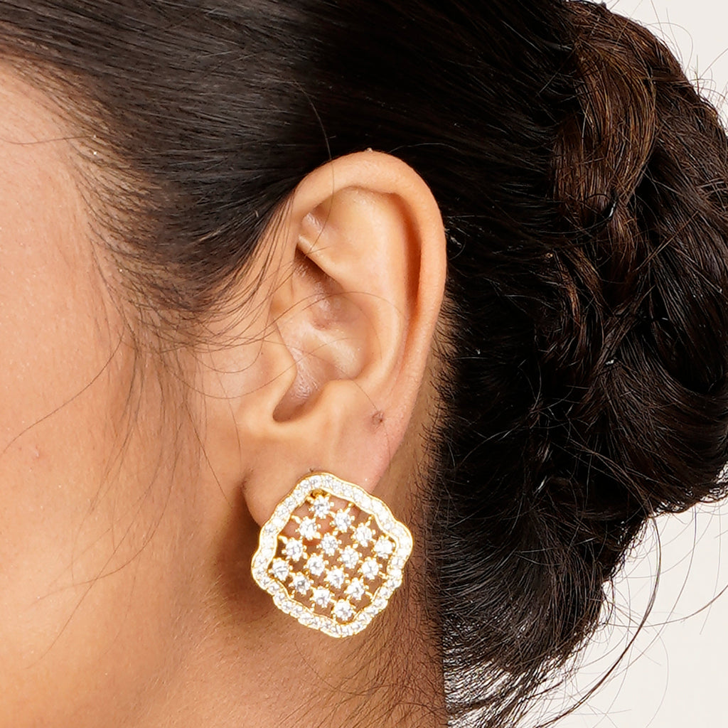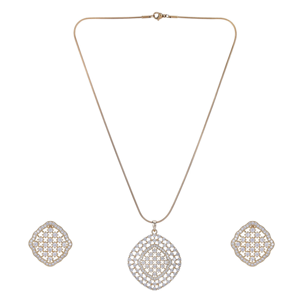 Details Size : Pendant L- 18"XW 0.8 " Earring L-0.6"XW .06" Stone Setting : Zircon String(s) : 22K Gold Plated Chain Drop(s)...