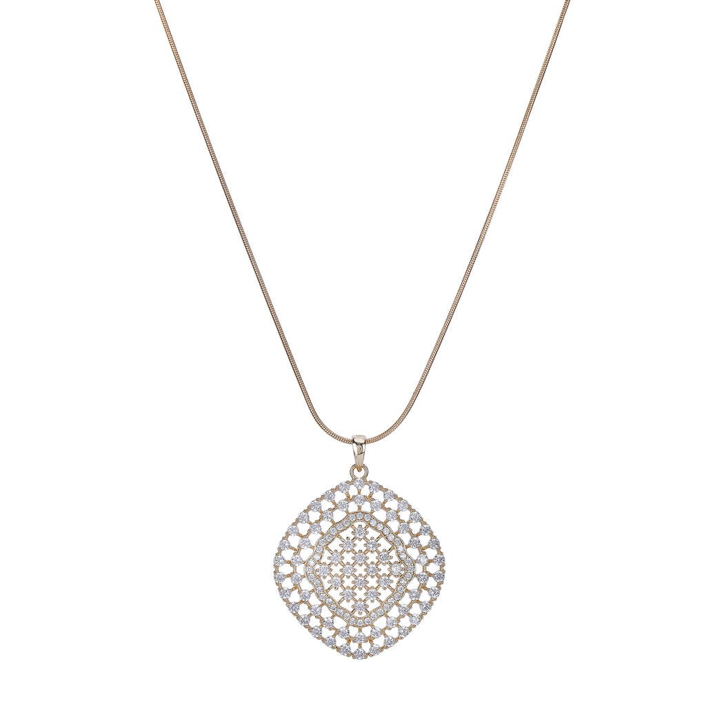 Details Size : Pendant L- 21"XW 1 " Earring L-2"XW .05" Stone Setting : Zircon String(s) : 22K Gold Plated Chain Drop(s)...