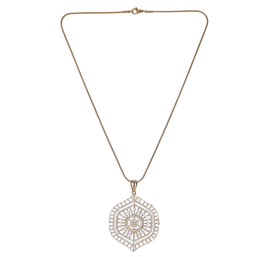 Details Size : Pendant L- 20"XW 1.1 " Earring L-0.7"XW .07" Stone Setting : Zircon String(s) : 22K Gold Plated Chain Drop(s) : Finish : 22K Gold plated Finding : Hook Link&Push Back Art Karat Jewelry is plated with 22k...