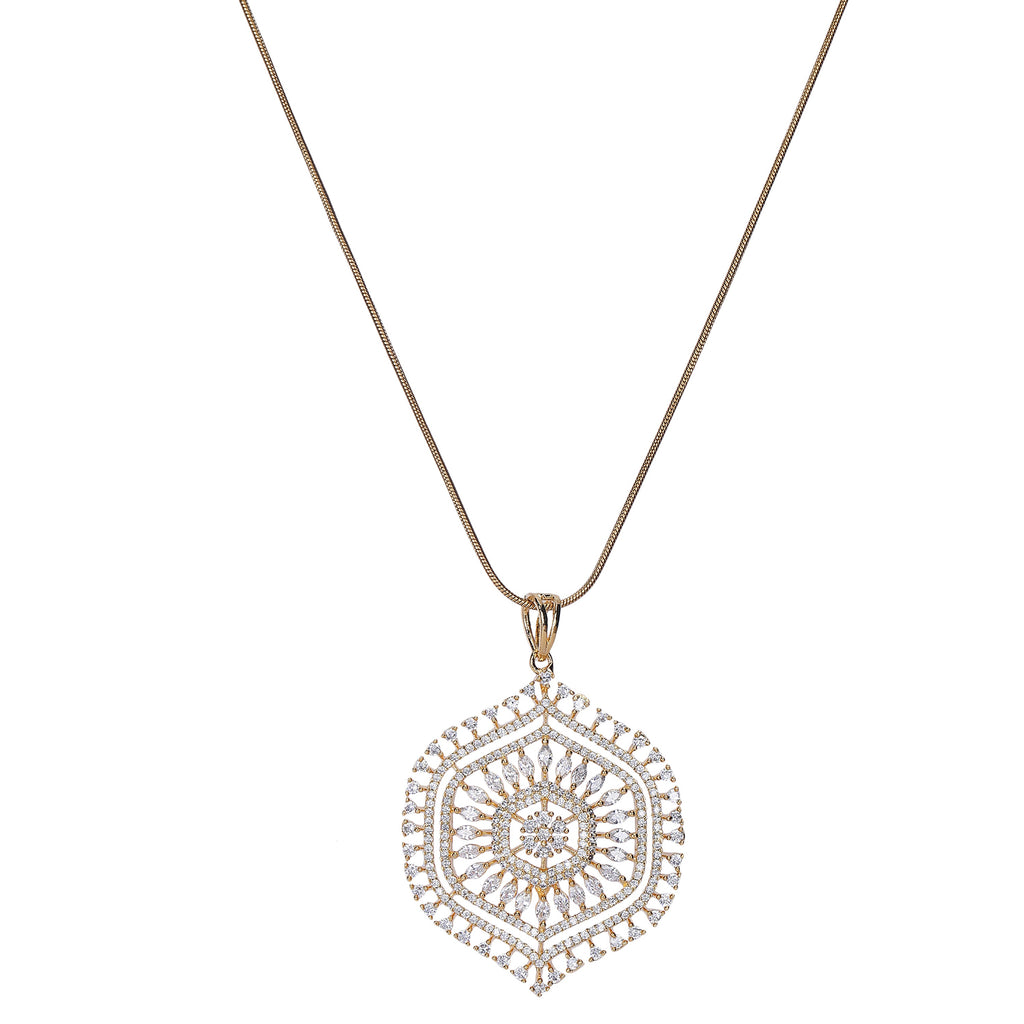 Details Size : Pendant L- 18"XW 0.7 " Earring L-0.3"XW .03" Stone Setting : Zircon String(s) : 22K Gold Plated Chain Drop(s) : Finish : 22K Gold plated Finding : Hook Link&Push Back Art Karat Jewelry is plated with 22k...