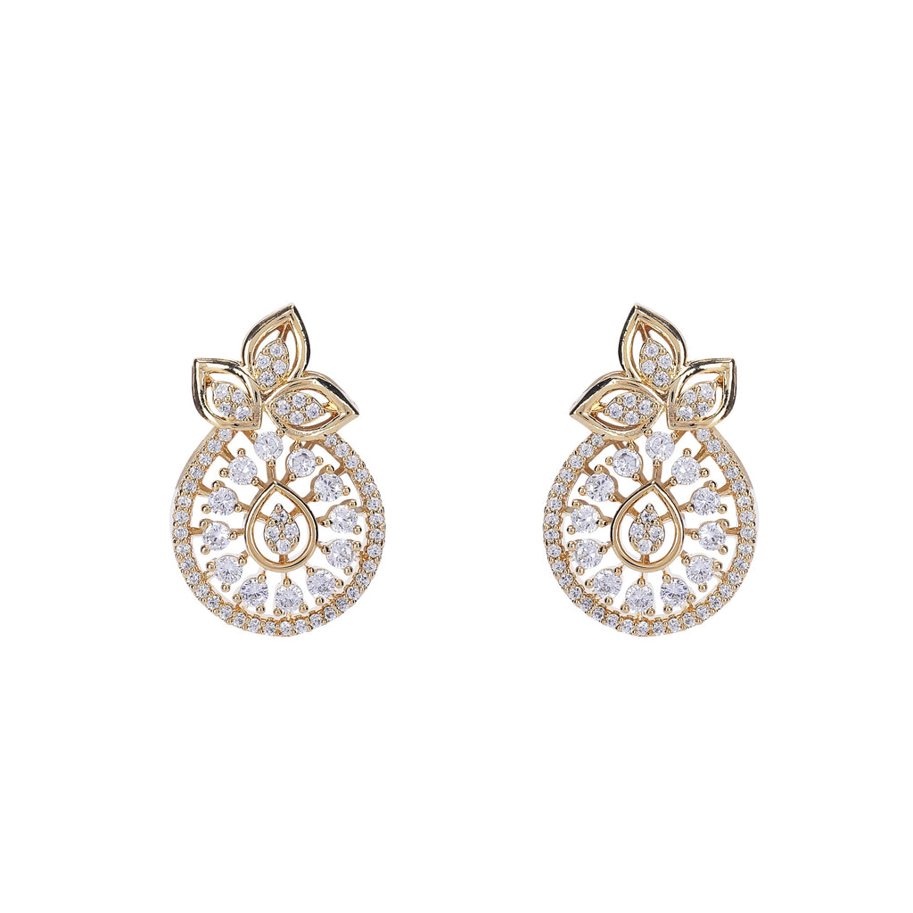 Details Size : Pendant L- 21"XW 1 " Earring L-2"XW .05" Stone Setting : Zircon String(s) : 22K Gold Plated Chain Drop(s)...