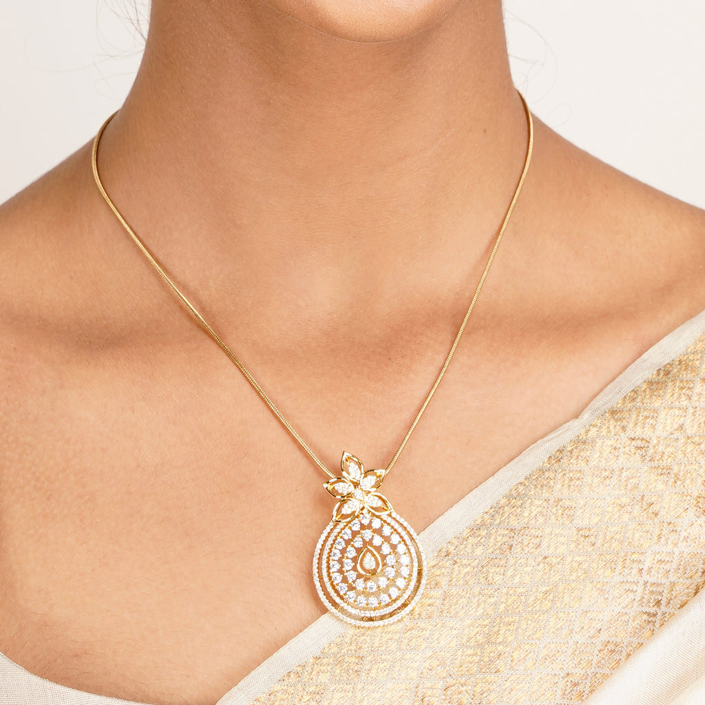 Details Size : Pendant L- 19"XW 0.8 " Earring L-0.7"XW .05" Stone Setting : Zircon String(s) : 22K Gold Plated Chain Drop(s) : Finish : 22K Gold plated Finding : Hook Link&Push Back Art Karat Jewelry is plated with 22k...