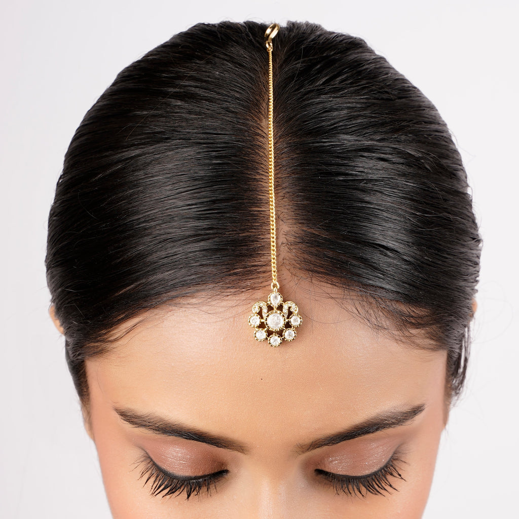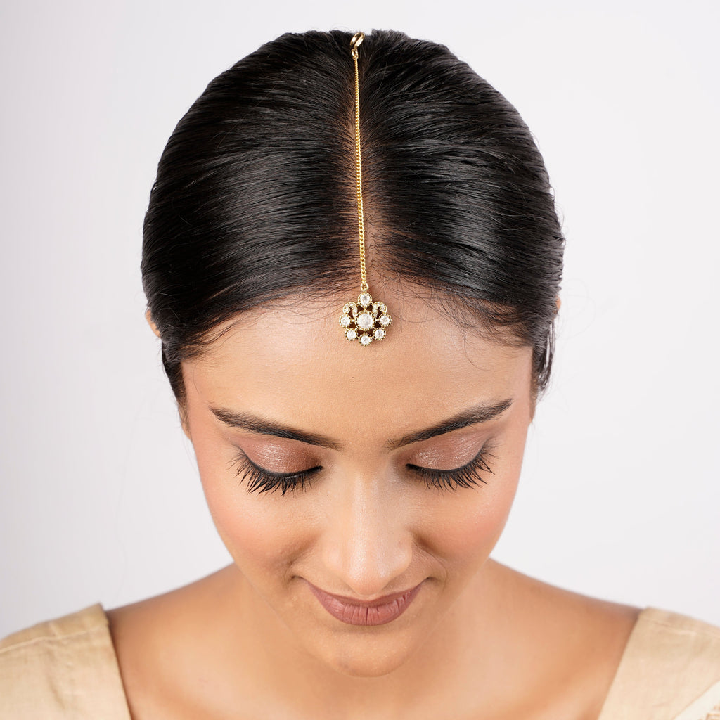 DETAILS Size: 5.5" L X 1.5" W Stone Setting: Kundan String(s): Pearls Drop(s): Pearls Finish: Gold Plated Finding: Hook Art Karat Jewelry is plated with...