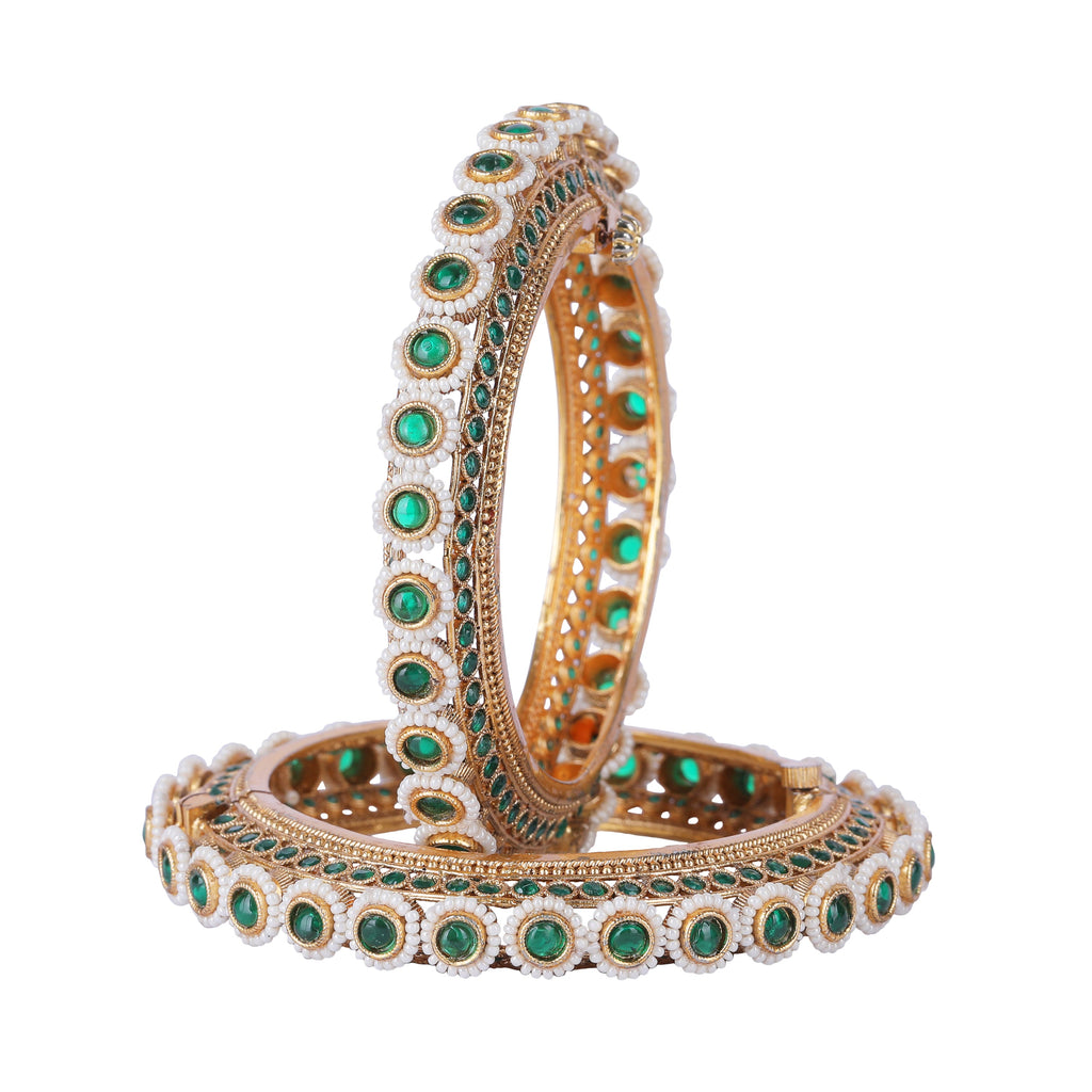 Details Size : Bangle - 2.4 , 2/6 Stone Setting : Zircon String(s) : Drop(s) : Finish : Ganga Jamuna Finding : Art Karat Jewelry is plated with 22k gold, studded with precious, semi-precious and natural gemstones. We offer a...