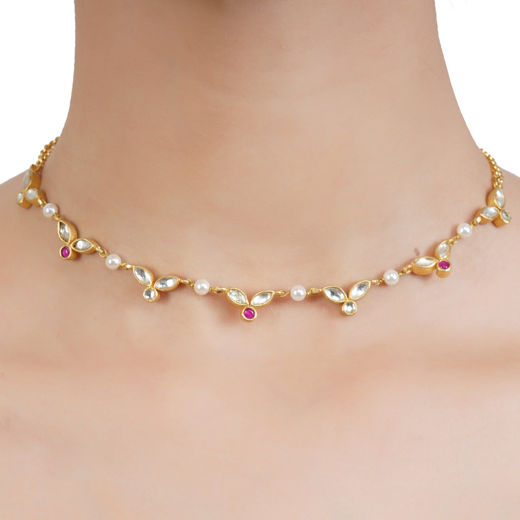 DETAILS Size: Necklace L- 16" W-2.2" , Earring L-1.4" Stone Setting: Zircon String(s): - Drop(s): Finish: Gold Finding: Hook Links & Push Back Art Karat Jewelry is plated with 22k gold, studded with precious, semi-precious and natural gemstones. We offer a FREE life...